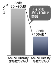 ソニーのプロオーディオ技術を応用。VAIO用に開発された、高音質サウンドチップを搭載。従来のPCのサウンドに比べ、ノイズを約 1/10まで低減。高性能オーディオ機器に迫る低ノイズ化を実現しました。