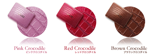 キュートなピンククロコダイル、鮮やかさが際立つレッドクロコダイル、大人の魅力漂うブラウンクロコダイルの3色からお選びいただけます。