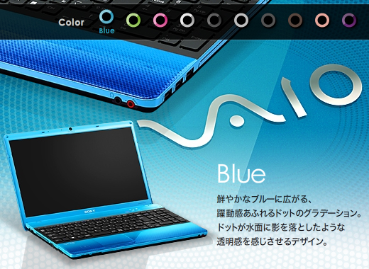 標準仕様(店頭販売)モデルには、ブルー・ピンク・ホワイト・ブラックを用意。VAIOオーナーメードモデル/法人向けカスタマイズモデルでは、限定色のグリーン・マットブラウン・マットピンク・バイオレットの選択が可能です。