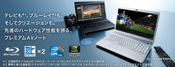 - *2 標準仕様(店頭販売)モデル または、VAIOオーナーメード/法人向けカスタマイズモデルでテレビチューナー選択時