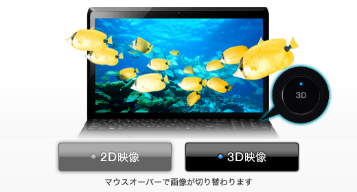 3Dコンテンツの奥行き(飛び出し量)は通常、映画のスクリーンやテレビなどPCよりも大画面のスクリーンに合わせて設定されています。3D対応モデルは、液晶サイズおよび想定視聴距離に合わせて奥行きを自動調整。3Dコンテンツを快適に楽しめます。