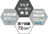 本体天面に150kgf(*)の圧力を加え、満員電車などの棚やトラックの荷台を想定した振動を与え、動作を確認。