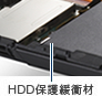 落下など、本体の異常な動きをセンサーが感知。ハードディスクの磁気ヘッドを退避させてディスク面の破損を防ぎ、大切なデータを保護します。センサーには、感度設定も可能な〈縦・横・高さ〉の3軸加速度センサーを採用し、微少な異常動作も敏感にキャッチします。