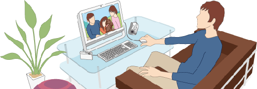 Webカメラ《MOTION EYE》と内蔵マイクを搭載。付属ソフト「Skype(スカイプ)」によりインターネットを利用したテレビ電話が可能です。