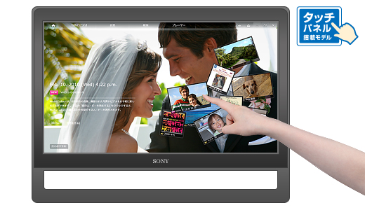 「Media Gallery」は好みや日付に合わせて、VAIO内の写真やビデオ、音楽のほかに、インターネット上のWeb動画などを探しておすすめしてくれるメディアプレーヤー。コンテンツをクリックひとつですぐに再生でき、同時に関連するコンテンツも次々と表示。タッチパネル搭載モデル(*)なら、タッチ操作も可能です。たとえば、再生中に「撮影した時期が近い写真とビデオ」、「2011年に発売された曲」などをおすすめしてくれます。意外な曲と出会ったり、想い出の写真を再発見したり。軽快な操作で好奇心といっしょに、次から次へコンテンツもつながっていく、新しい楽しみが広がります。