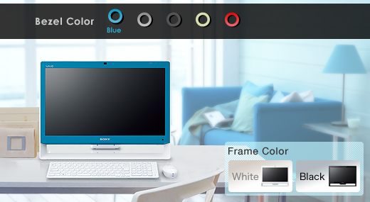 置き場所を選ばない、薄さ約18.5cmのスリムデザイン(*)。リビングはもちろん、プライベートルームにもすっきりと設置できます。ベゼルカラーはホワイト・ブラック・ブルーに加え、VAIOオーナーメード/法人向けカスタマイズモデルではレッドとベージュの選択が可能。さらに、VAIOオーナーメード/法人向けカスタマイズモデルでは、フレームのカラーもホワイト・ブラックから選んで自由に組み合わせることができます。着せ替え感覚でキーボードに装着できる、4色の別売キーボードウエアも用意しているので、多彩なコーディネートが楽しめます。