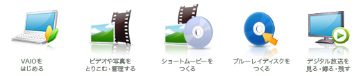 取りためたビデオや写真を、ただファイルとして保存しておくだけでなく、ショートムービーやブルーレイディスクへの保存など素敵なコンテンツとして思いっきり楽しめるVAIOオリジナルソフトウェア。ショートムービーを編集してオリジナルディスクを作成するといったことが簡単に行えます。