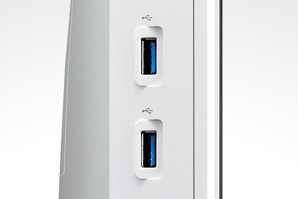 従来のUSB 2.0と比較して約10倍のスピードでデータ転送する最新規格USB 3.0に対応。本体左側面にUSB 3.0ポートを2つ搭載しています。