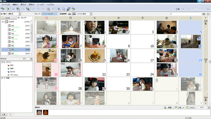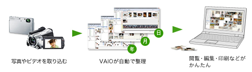 3歳のころの写真が見たい。初めての運動会のビデオを見たい。「PMB(Picture Motion Browser)」なら、VAIOに取りこんだ写真やビデオを、撮影した日付やフォルダごとに自動で整理整頓。お子さまの成長記録映像も、素早くそして手軽に探しだせます。