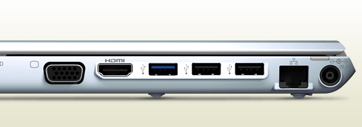 従来のUSB 2.0と比較して約10倍のスピードでデータ転送する最新規格USB 3.0に対応。本体左側面にUSB 3.0ポートを1つ搭載しています。