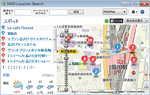 PCに搭載されている無線LANにより現在地を取得。半径3キロメートル以内にあるさまざまな施設やスポット情報をサーチ/発見できるソフトウェアです。