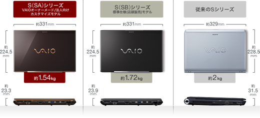 また、VAIOオーナーメードモデル/法人向けカスタマイズモデルでは、標準仕様(店頭販売)モデルの3色に加えシルバー、レッド、ブルーの選択も可能。さらに、VPCSAシリーズでは、より高級感を演出するグロッシーブラウン、オールブラック、ライトシルバー、カーボンメッシュブラックも選べます。