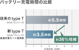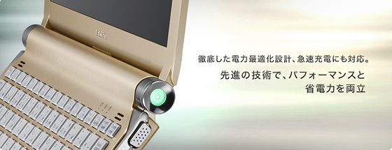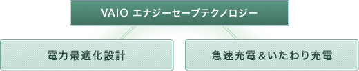 パフォーマンスと省電力の両立。これもモバイルPCにとって重要なテーマです。type Tは、ソニー独自の省電力技術、「VAIO エナジーセーブテクノロジー」を採用。高度な電力最適化設計と、状況に応じて使い分けられる2つの充電モードを核としたこの新技術により、性能を犠牲にすることなく圧倒的な低消費電力を実現。先進のモバイルPCにふさわしい優れたスタミナを身につけました。