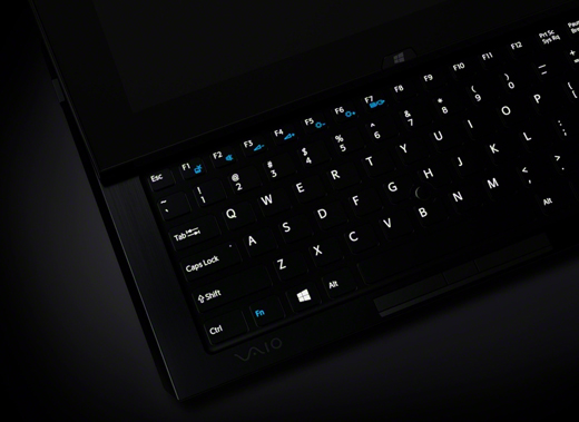液晶をスライドさせて立ち上げれば、キーボードモードにチェンジ。コンパクトながら打ちやすいキーボードで、メールや資料作成などを快適に行うことが可能です。また、照度センサーを搭載し、周囲の明るさを感知して自動で点灯可能(*1)なバックライト付きキーボードなので(*2)、暗い場所でもストレスなくタイピングできます。