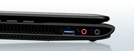 PC本体の電源がオフで、AC電源非接続時でも給電が可能なUSB端子を搭載。外出先で、スマートフォンや携帯音楽プレーヤーのバッテリーがなくなった時でも、手軽に充電ができて便利です。