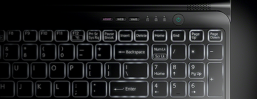LEDバックライトが点灯するキーボードを採用。キーのひとつひとつを浮かび上がらせるようにバックライトが点灯し、ベッドルームや消灯後の機内など、薄暗い場所でも快適なキー入力ができます。