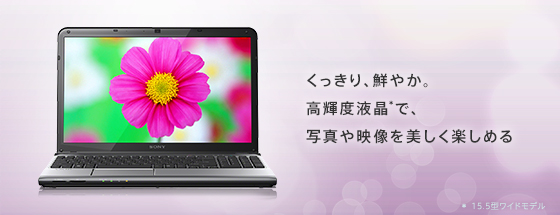 15.5型ワイドモデルは、明るく鮮やかな高輝度液晶を搭載。"PlayMemories Home for VAIO"で管理している写真・映像の再生やショートムービーづくりも、見やすい大画面と美しく鮮明な画質で快適に楽しめます。