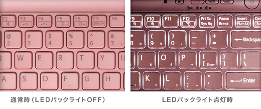 周囲の明るさを感知する照度センサーにより、自動でLEDバックライトが点灯するキーボードを採用。暗い場所では、キーのひとつひとつを浮かび上がらせるようにバックライトが点灯。明るい場所へ移動すれば、自動でOFFになる省電力設計です。ベッドルームや消灯後の機内など、薄暗い場所でも快適なキー入力ができます。