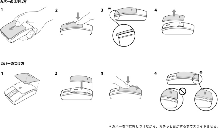 従来のワイヤレスマウスでは、電源のON/OFFはマウス底面のスイッチで切替えを行うのが一般的でしたが、ユニークなスライド式カバー機構と電源ON/OFF機能を連動させたことにより、ユーザーが意識せずに電池の消耗を抑えられます。