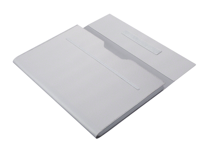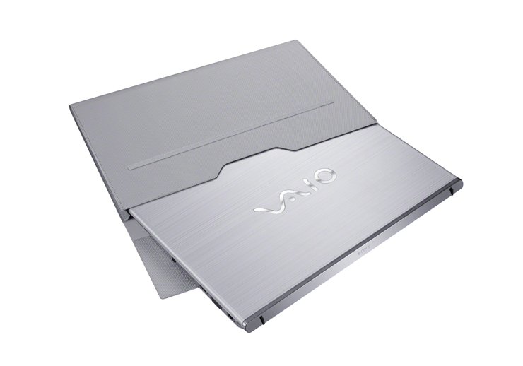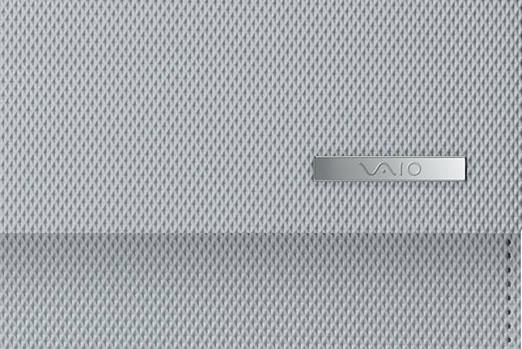 Tシリーズ本体のシルバーと生地色を合わせ、表面にはディンプル加工をほどこしたスタイリッシュなデザイン。蓋の部分にはVAIOロゴのバッチが付き、高級感を演出します。
