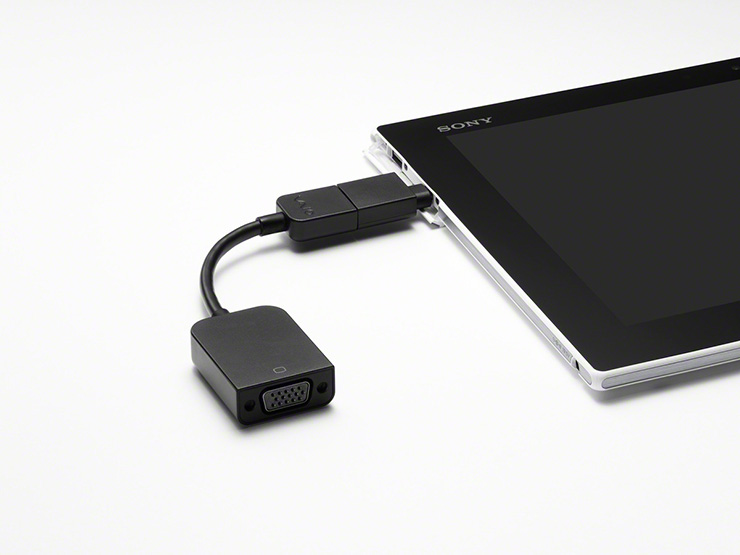 HDMI端子に接続すれば、VGA端子のみに対応している機器を使うことができます。マイクロHDMI変換コネクターが付属しているので、マイクロHDMI端子搭載のVAIO Tap 11でもご使用いただけます。