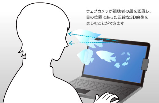 ソニー独自の顔認識技術を使って、PC内蔵カメラで顔の位置を検出し、顔の位置に最適な3D映像を調整、鑑賞できますので、パーソナル3Dとして最適です。