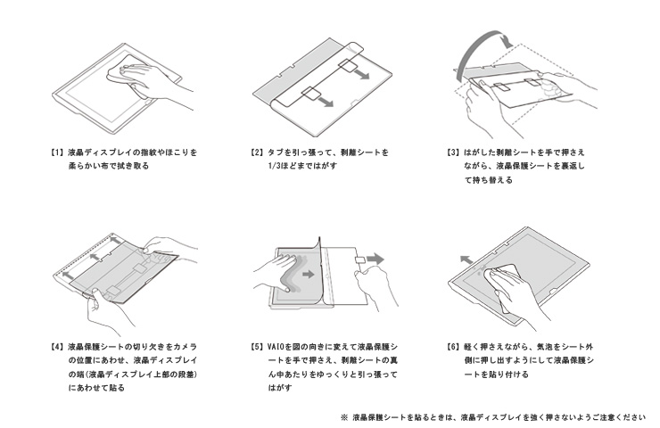 11.6型ワイドのVAIO Duo 11にぴったりの液晶保護シート。サイズだけではなく、カメラやボタンなどの位置も合わせています。また、傷や汚れを防止し、埃やタッチパネル操作時の指紋も拭き取りやすくなります。