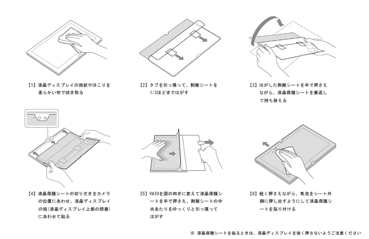 13.3型ワイドのVAIO Duo 13にぴったりの液晶保護シート。サイズだけではなく、カメラやボタンなどの位置も合わせています。また、傷や汚れを防止し、埃やタッチパネル操作時の指紋も拭き取りやすくなります。