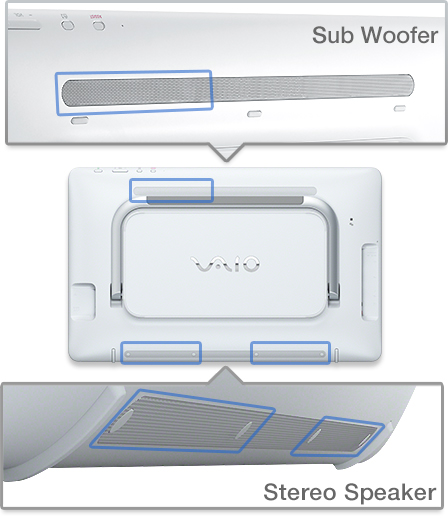 L/Rスピーカーとサブウーファーを本体の背面に配置。テーブルトップスタイルでもスピーカーからの音がテーブルから反射され画面側にいる視聴者へ音を伝えます