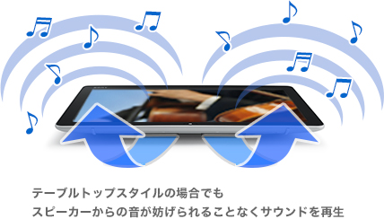 各スタイルに応じた音質チューニングをし、内蔵されている角度センサーで画面角度を検知して、音場を自動で制御。異なる設置角度でも一定の音場維持をする機能を搭載しました。