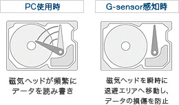 落下センサーに傾きセンサーを加えることで、落下などの衝撃だけでなく、机などに置いた際の衝撃についても回避できる進化したVAIO HDDプロテクションを採用しました。日常使いでの、不意の衝撃時でもデータを安全に保護できるようになりました。