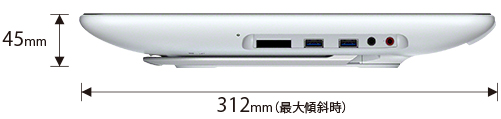 自由にスタンドの角度を変えられる「フリースタイルスタンド」を採用。好みや目的に合わせた置き方で使えます。また、「スリムデザイン」なので、置き場所も使わないときの収納場所も、省スペース。