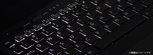 照度センサーが周囲の暗さを検知して、入力操作が行われると点灯(*)するバックライトキーボードを搭載。