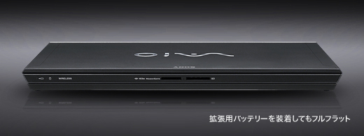 内蔵のバッテリーで約9.5時間。別売のリチャージャブルバッテリーパック(拡張用)を本体底面に装着すれば、最長約18時間の長時間駆動が可能。拡張用バッテリーを装着した状態でもフルフラットなので、カバンにも入れやすく、持ち運びも手軽です。
