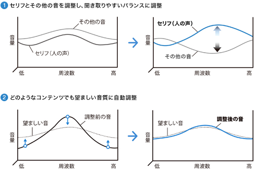 デジタル信号処理により、音響特性を補正することで、本体に内蔵のスピーカーで自然なサウンドを楽しめます。