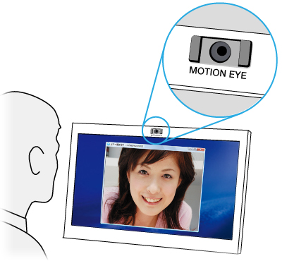 Webカメラ《MOTION EYE》と内蔵マイクを搭載。付属ソフト「Skype(スカイプ)」によりインターネットを利用したテレビ電話が可能です。