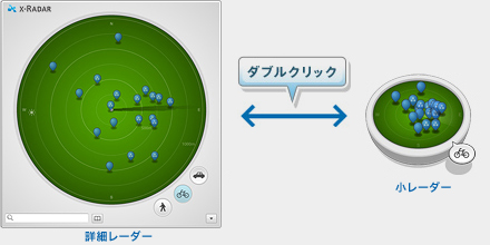 「x-アプリ」シリーズ スポット探索レーダー「x-Radar」を搭載。Xシリーズをレーダーにして、現在地を拠点に半径3キロメートル以内にあるさまざまなスポットをサーチ/発見できます。オンラインのときは「PetaMap」ボタンで直接Webサイトにアクセスして、気になるスポットの詳細情報などを簡単にチェックすることが可能。オフラインのときでも、「地図を表示」ボタンで標準搭載の「プロアトラスSV5 for VAIO」で位置を確認できます。さらに、事前に「PetaMap」からガイドブックをダウンロードしておけば、オフラインのときでも詳細な情報を確認できます。