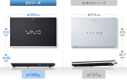 軽く、薄く、そして強いボディを実現するために、外装には軽量ながら剛性に優れたカーボン素材を採用。パームレストにはアルミニウムを使用し、強度を高めています。断面を六角形状にしたHexa-shell(ヘキサシェル)構造は、VAIOならではの機能美あふれるデザイン。また、底面に取り付けられるリチャージャブルバッテリーパック(内蔵用)については、底面の8カ所をビスで固定するなど、細部まで徹底的にこだわり剛性を追求しました。さらに、薄型ボディに最新CPUを内蔵するため、デュアルファンを採用し、キーボードサイドにもインテークを設けることで、吸排気効率をアップ(*)。モバイルPCとしての安定したパフォーマンスを追求しました。