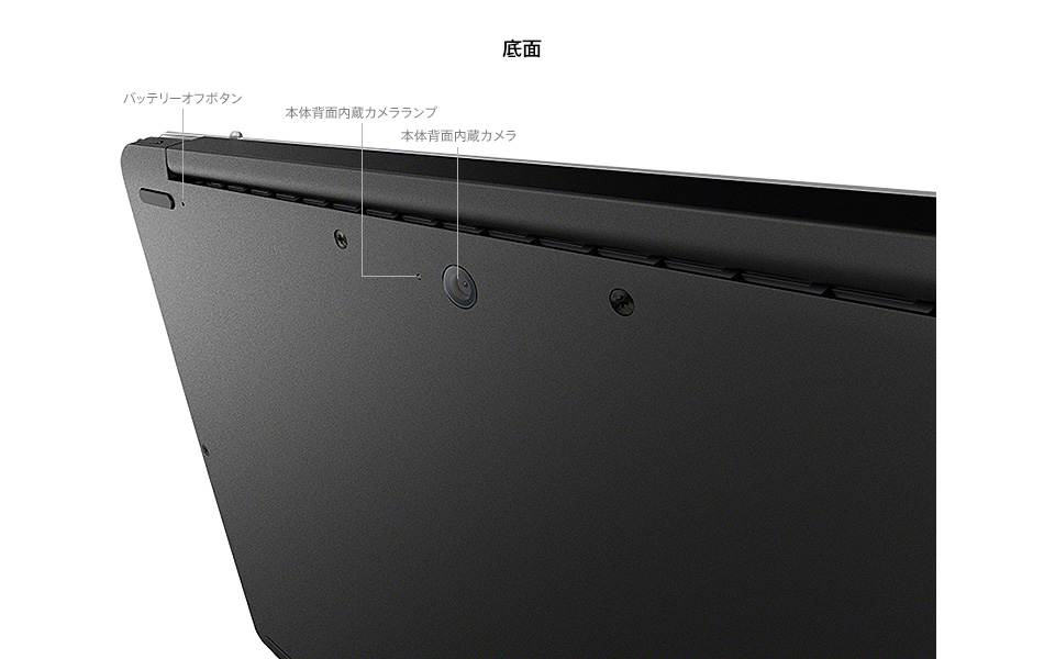 最薄部約14.3mmでカバンに入れても持ち運びやすい薄型コンパクトボディ。さらに、バッテリーは約12時間の長時間駆動でスタミナ性能も十分。外出先でも安心して使えるスタイリッシュなモバイルPCです。