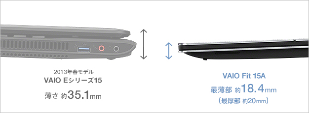 従来のPCと比較して約半分の圧倒的な薄さを実現。最薄部は約18.4mm(最厚部20mm)。家のなかでの持ち運びもラクに行えます。