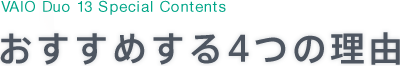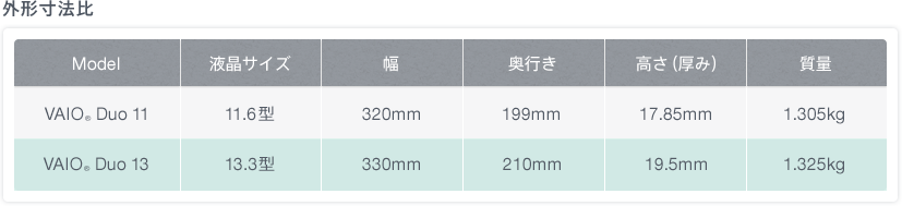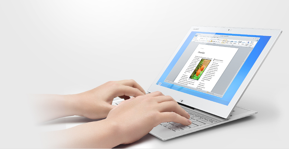 VAIO Duo 13は、VAIO Duo 11のモバイルPCとしての使いやすいサイズをほぼ継承しながら、液晶インチサイズが13.3型と大幅アップ。Webの閲覧領域も広くて見やすく、メモ帳の手書き入力も広いスペースを使ってラクに行えます。