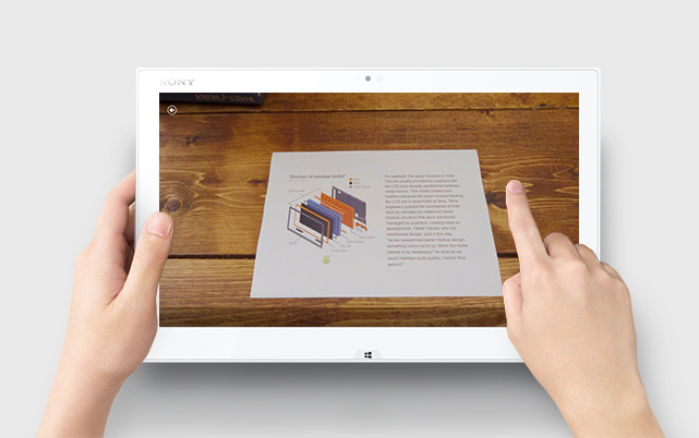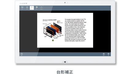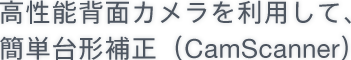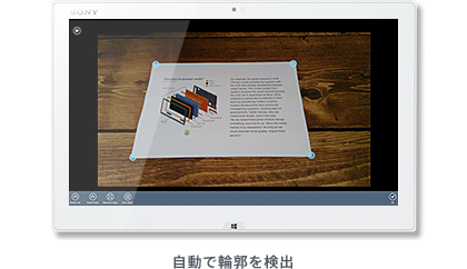 高性能"Exmor RS for PC" CMOS センサーを搭載した背面の8Mカメラを利用。「CamScanner(カムスキャナー)」を使えば、撮影した画像を簡単に台形補正できます。紙の資料や白板書きの内容を斜めのアングルで撮影しても、正面の見やすい画像で保存できます。