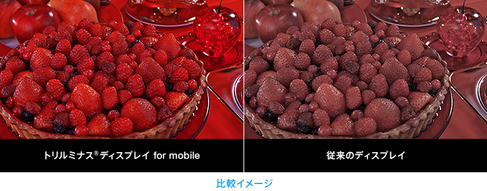 色鮮やかなトリルミナス®ディスプレイ for mobileや高輝度・高解像度液晶で、かけがえのない写真や動画をリアルに再現。