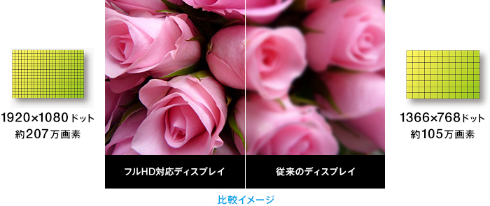 1920x1080ドットのフルHD液晶搭載のVAIOなら、撮影した写真、ハイビジョンの映像、Webページなどを、ディテールまでくっきりと表示。大切な思い出を、美しく、精細に映しだします。