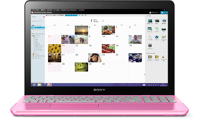 VAIOに写真や動画を取りこめば、撮影日ごとに自動で整理。カレンダー上で表示されるので、見たい写真や動画がすぐに見つかります。