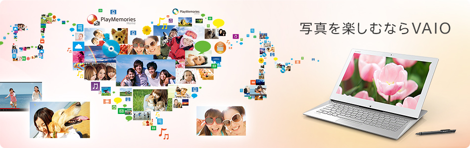「PlayMemories Home for VAIO」や「VAIO Movie Creator」を使えば、写真や動画の整理、画像補正も自動でやってくれる。