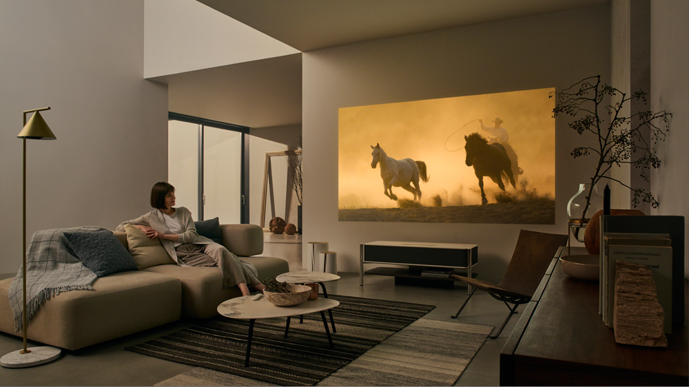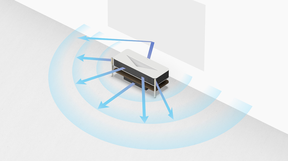 壁際に置くだけで、高精細な大画面映像と透明感のある音が、いつもの空間を変える