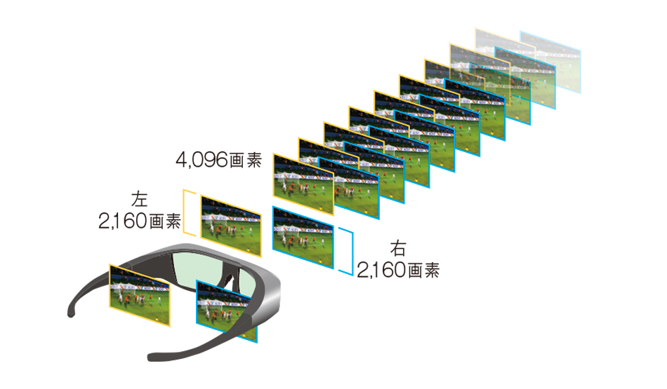 高速パネル駆動の「SXRD」を搭載し、3D特有のクロストーク現象を極限まで低減しました。また、左目用、右目用のフルHD解像度の映像信号はリアリティークリエーションにより高精細な4K映像信号に変換されており、3Dも4K画質で楽しめます。
