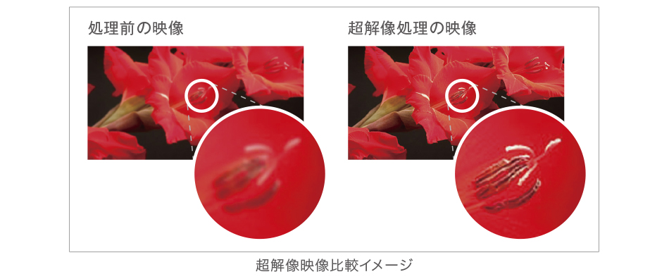 ネイティブ4Kパネル0.74型「4K SXRD」を搭載。これにより、フルHDパネルでは表現できない高精細かつ自然な表現が可能になり、被写体の輪郭や微妙なディテールまでクリアに描きだします。また、ネイティブ4Kパネルの採用で、3Dコンテンツも2Dコンテンツと同様に4K解像度で臨場感豊かに楽しめます。また、ソニーが十数年培ってきた超解像技術開発に伴うノウハウに新規技術を加えた「データベース型超解像処理LSI(リアリティークリエーション)」を搭載。フルHD解像度の映像信号(3Dを含む)をより高精細な4K(水平4,096×垂直2,160画素)映像信号に変換します。ソニー独自のデータベース型超解像においてパターン分類手法を学習型に進化させることで、画像に合わせた最適な超解像処理を可能にしました。これにより、きめ細やかで高品位な4K映像の生成を実現しました。