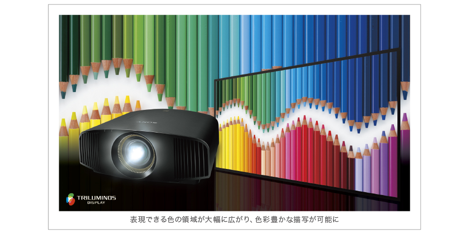 広い色再現領域を持つ「トリルミナス(R)ディスプレイ」に対応。さまざまな赤の色合い、エメラルドグリーンのような海など、これまで表現の難しかった繊細な色を色彩豊かに再現することが可能です。「データベース型超解像処理LSI(リアリティークリエーション)」の高精度なカラーマネジメントと相まって、今まで以上にリアルで質感の高い映像を実現しています。また、「トリルミナス(R)カラー」対応のソニー製カメラで撮った写真や映像を「トリルミナス(R)ディスプレイ」対応のVPL-VW535で再生すれば、豊かで自然な色のまま大画面で思い出を楽しめます。